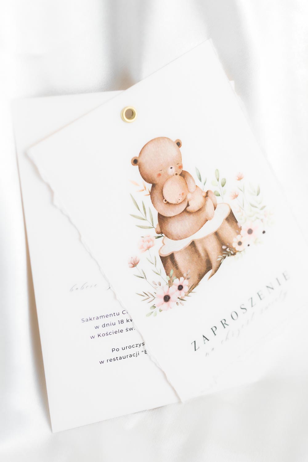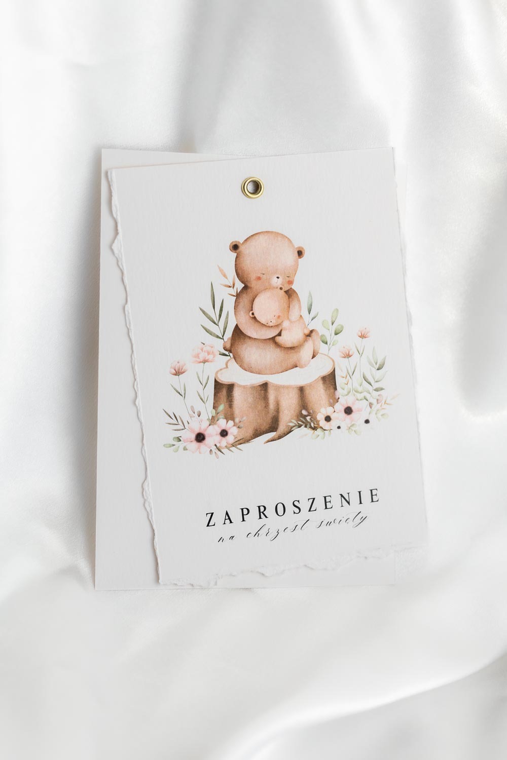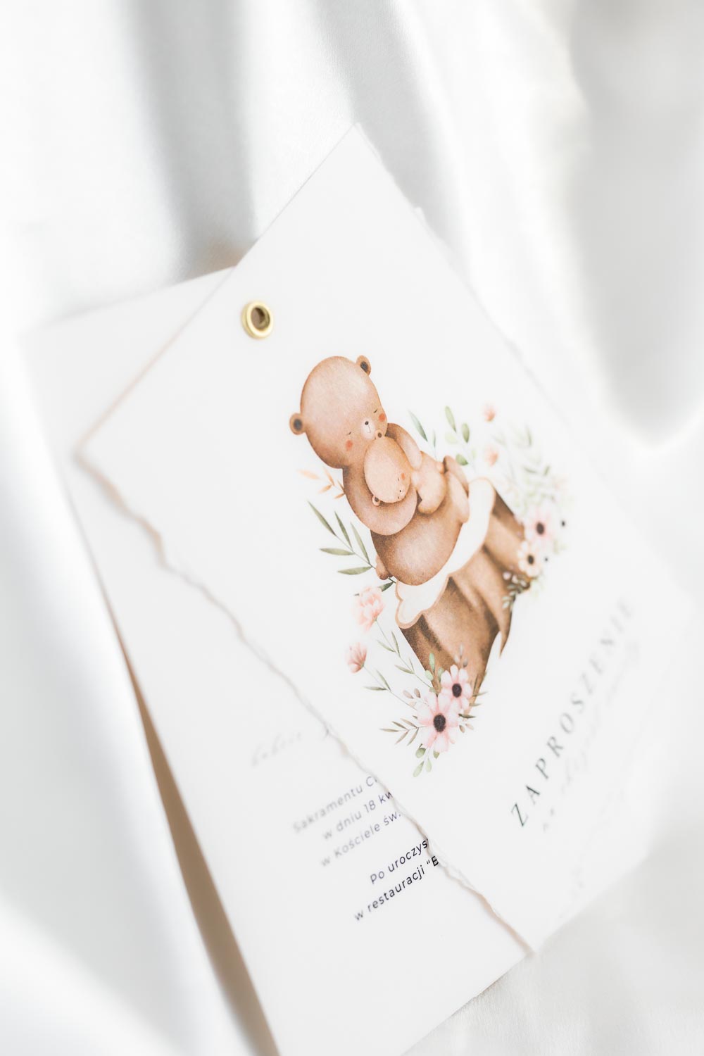 Nowoczesne zaproszenie na pierwsze i każde kolejne urodziny. Minimalistyczna forma z grafiką niedźwiadka.