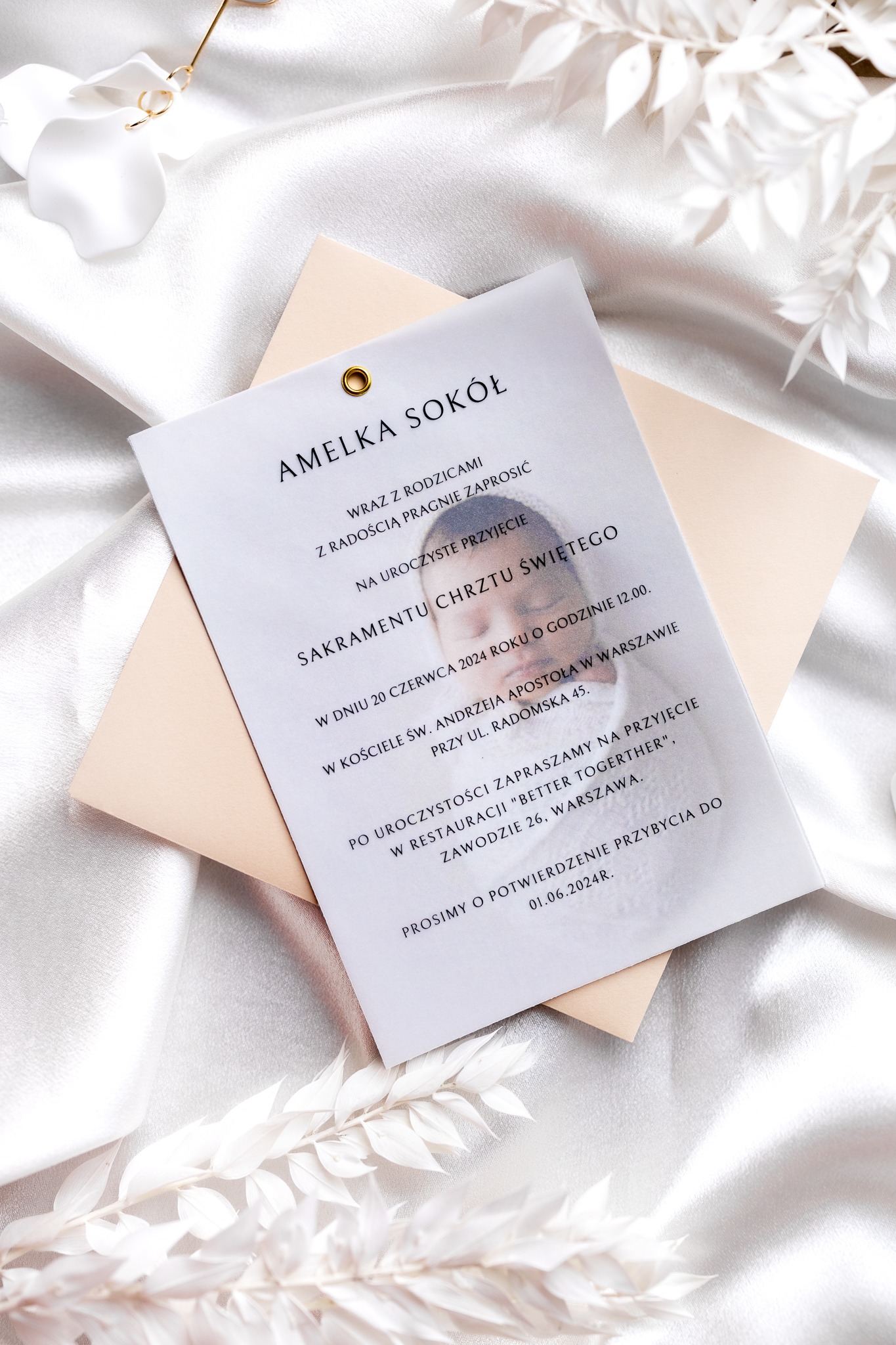 To zaproszenie jest doskonałym połączeniem klasyki i nowoczesności, idealne na tak ważną uroczystość jak Chrzest Święty. Personalizacja zaproszenia sprawia, że każdy egzemplarz jest unikatowy i pełen ciepła.