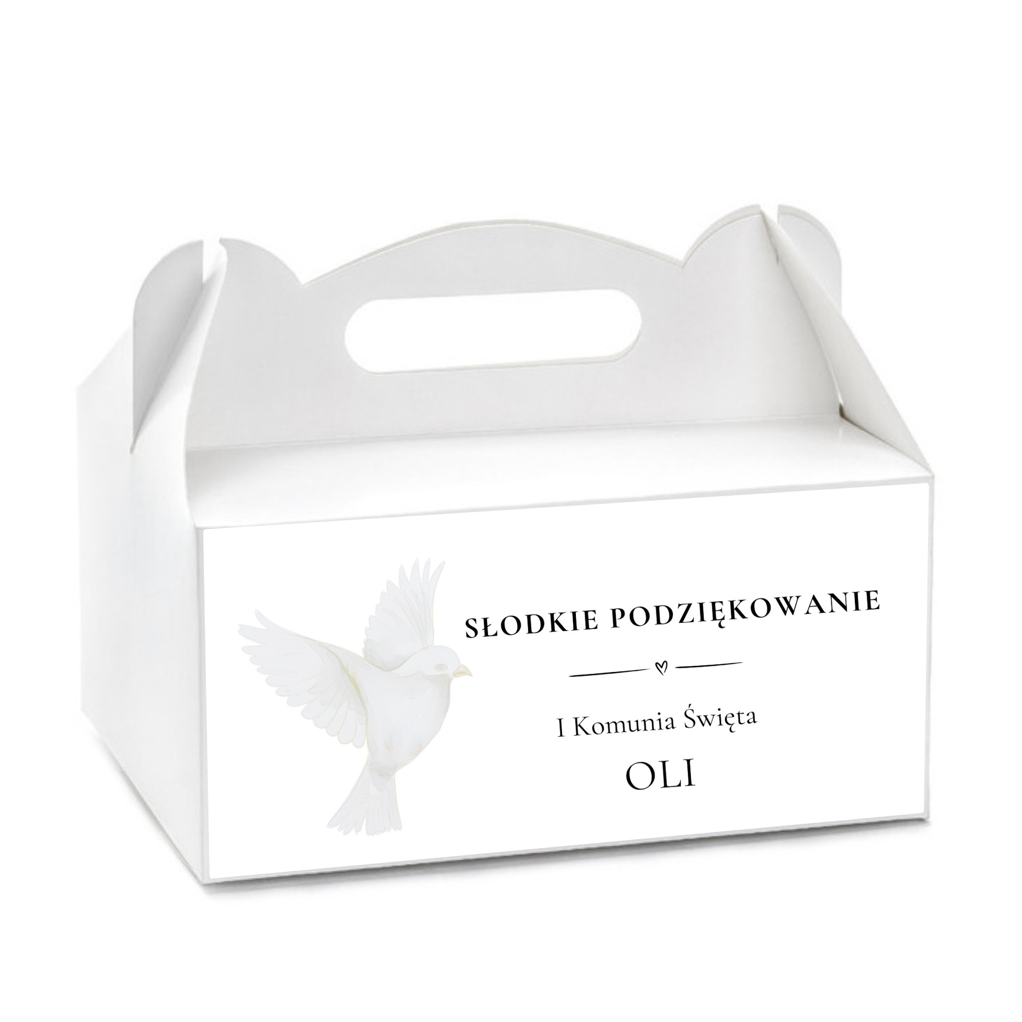 To idealne rozwiązanie na zapakowanie ciasta lub innych słodkości przygotowanych dla gości. Taki drobny gest z pewnością wywoła uśmiech i będzie miłym wspomnieniem Pierwszej Komunii Świętej.