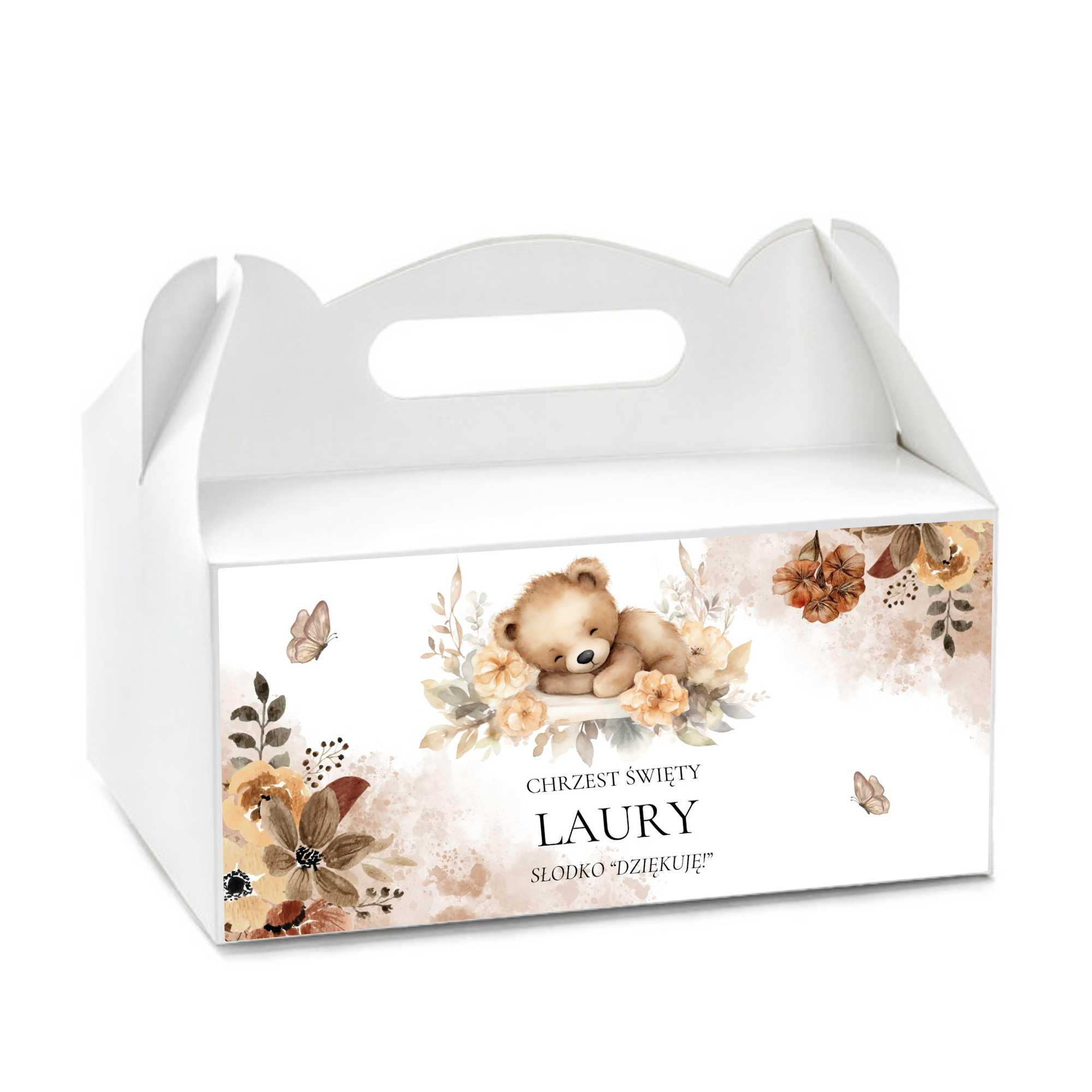 To idealne rozwiązanie na zapakowanie ciasta lub innych słodkości przygotowanych dla gości. Taki drobny gest z pewnością wywoła uśmiech i będzie miłym wspomnieniem dnia Chrztu Świętego.