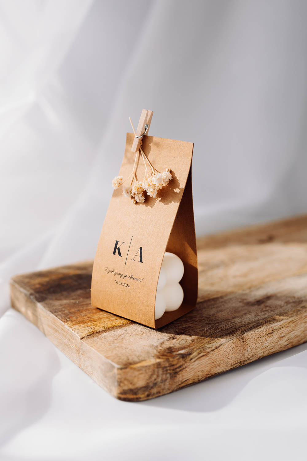 Zestaw ze zdjęcia obejmuje: świecę w kształcie bubble, opakowanie papierowe EKO, gałązkę gipsówki, mini spinacz. Ze względu na ręczne wykonanie, na świecy mogą wystąpić drobne niedoskonałości, które nie wpływają na jej walory. Czas realizacji to około 10 dni roboczych, jednak w okresie gorącego sezonu (maj-sierpień) czas realizacji może się wydłużyć. Zachęcamy do składania zamówień z wyprzedzeniem.