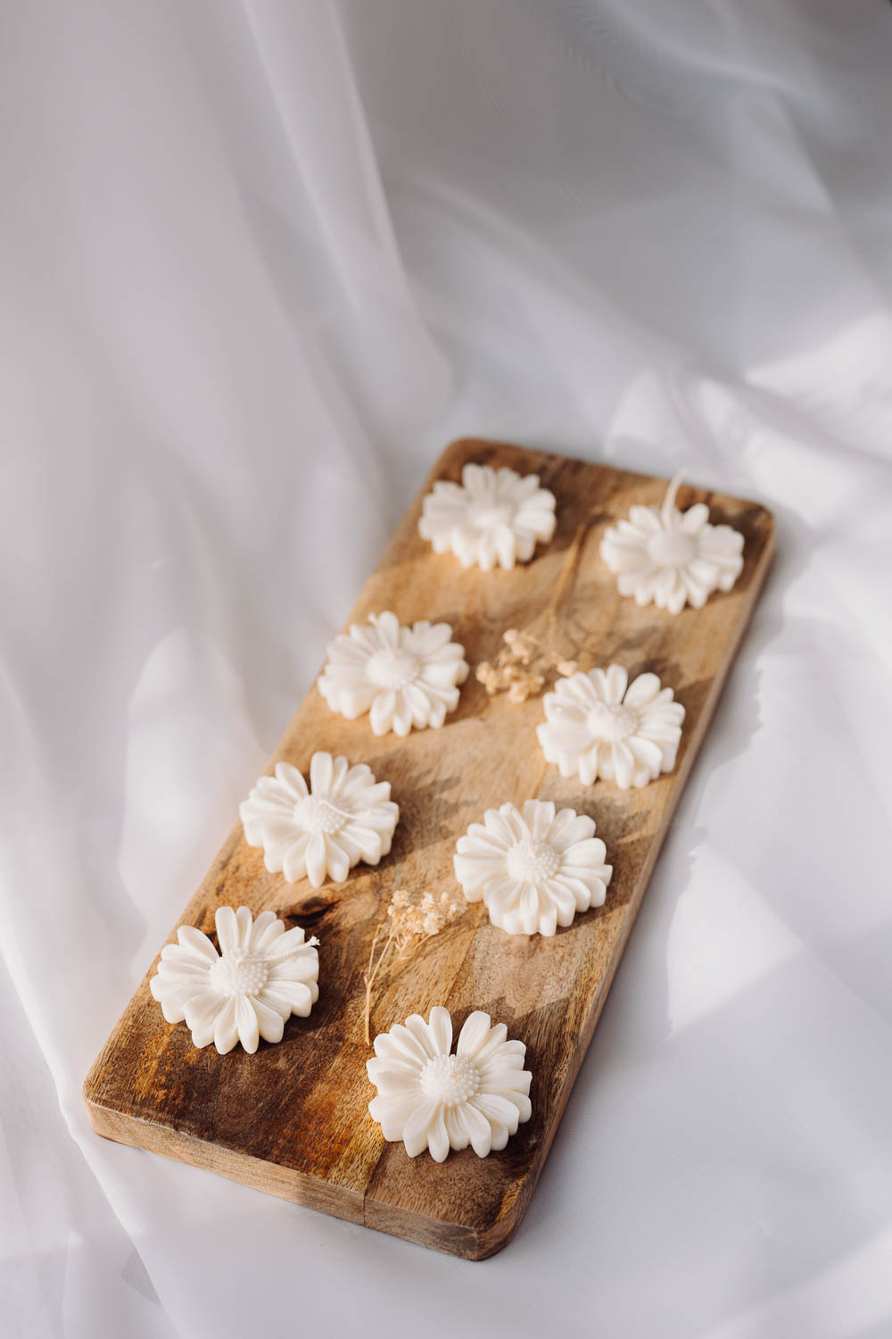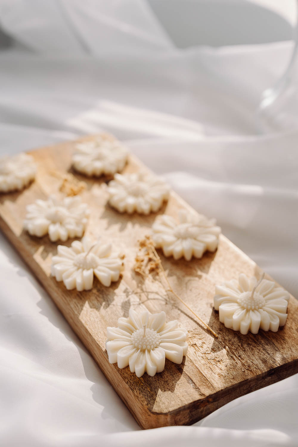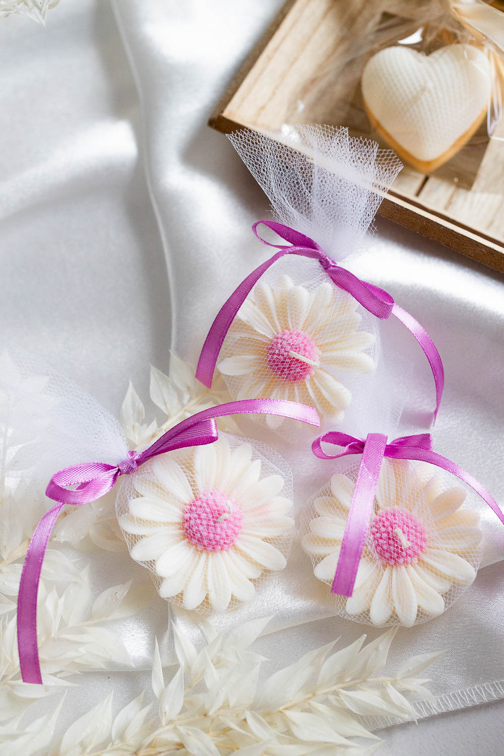 W zestawie znajduje się świeca w kształcie stokrotki, opakowanie celafanowe, podstawka, satynowa wstążka, papierowy bilecik z personalizacją oraz gałązka gipsówki. Ze względu na ręczne wykonanie, na świecy mogą wystąpić drobne niedoskonałości, które nie wpływają na jej walory. Czas realizacji to około 10 dni roboczych, jednak w okresie gorącego sezonu (maj-sierpień) czas realizacji może się wydłużyć. Zachęcamy do składania zamówień z wyprzedzeniem. Wybraną kolorystykę świec należy podać w trakcie składania zamówienia.