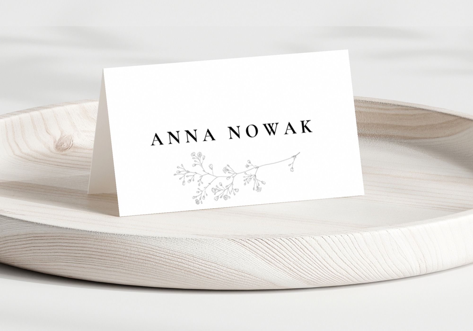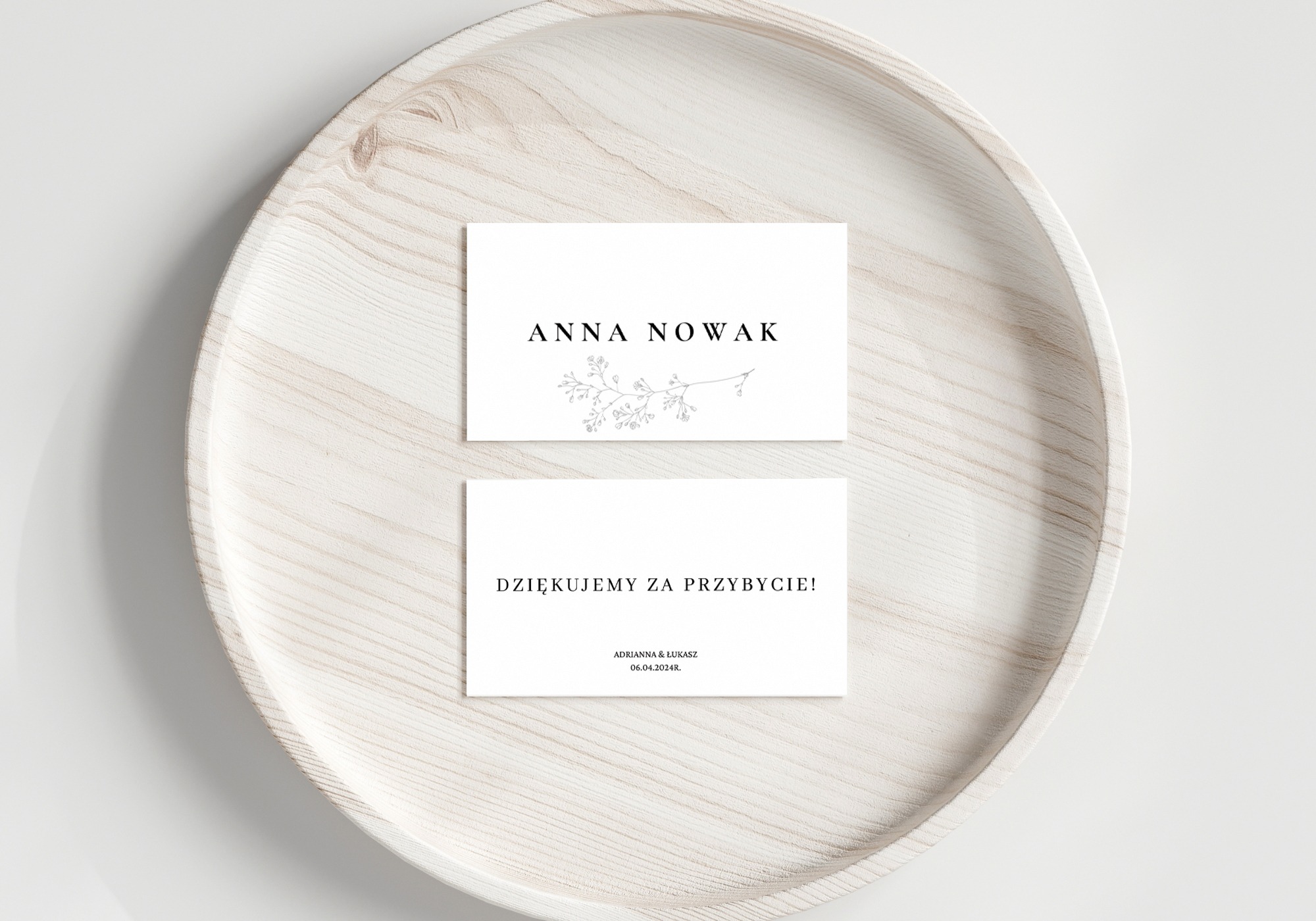 - Personalizacja: z tyłu winietki możemy umieścić dowolny tekst lub monogram Pary Młodej, co nadaje im indywidualny charakter i sprawia, że staną się wyjątkowym elementem dekoracji.