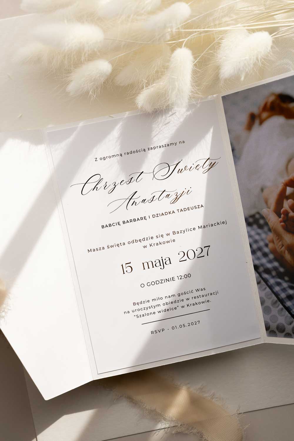 Nasze zaproszenie na chrzest w formie folderu ze zdjęciem dziecka to połączenie elegancji, jakości i sentymentalnego charakteru.