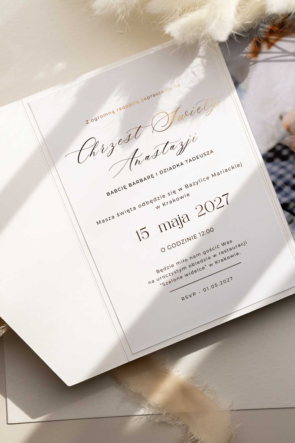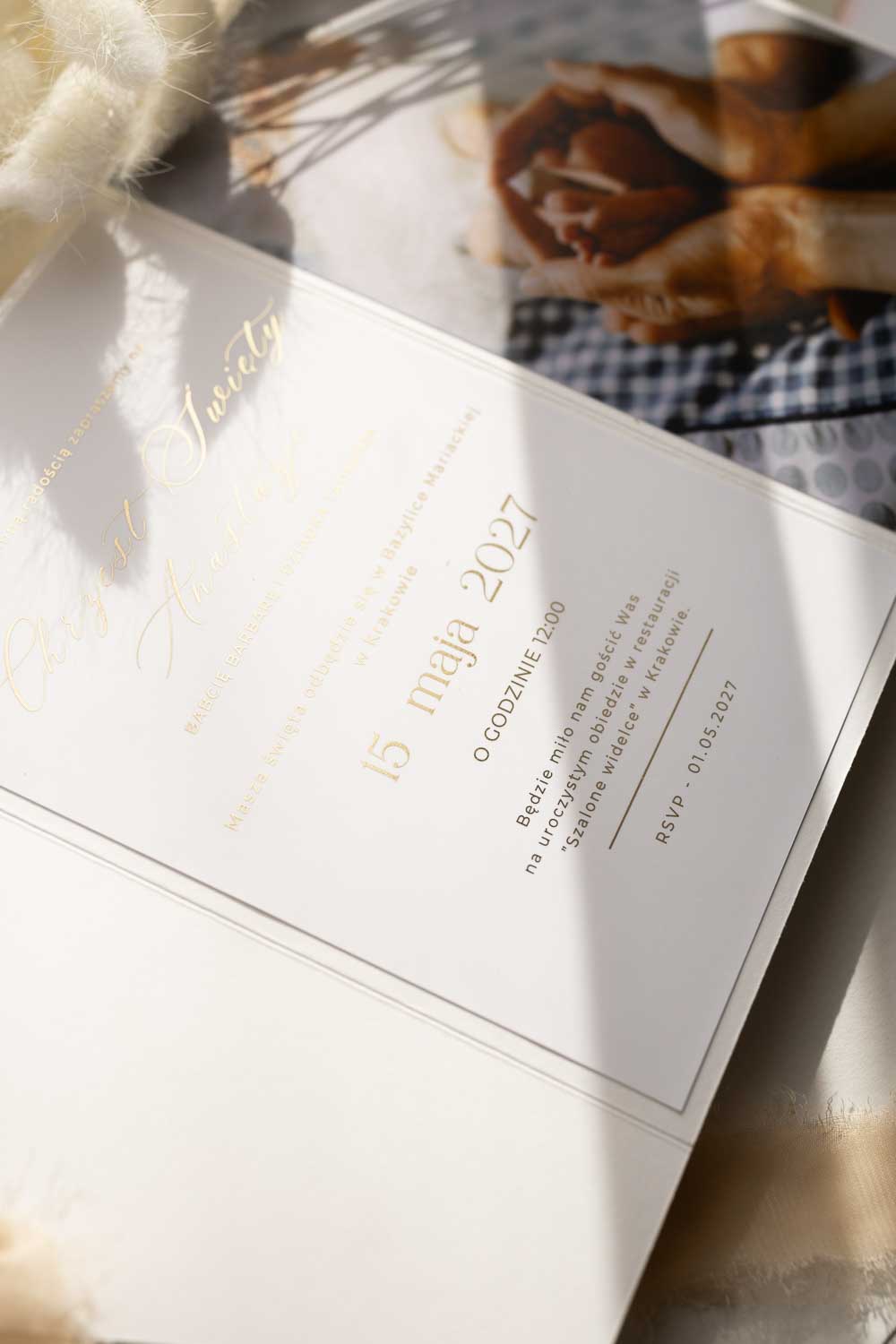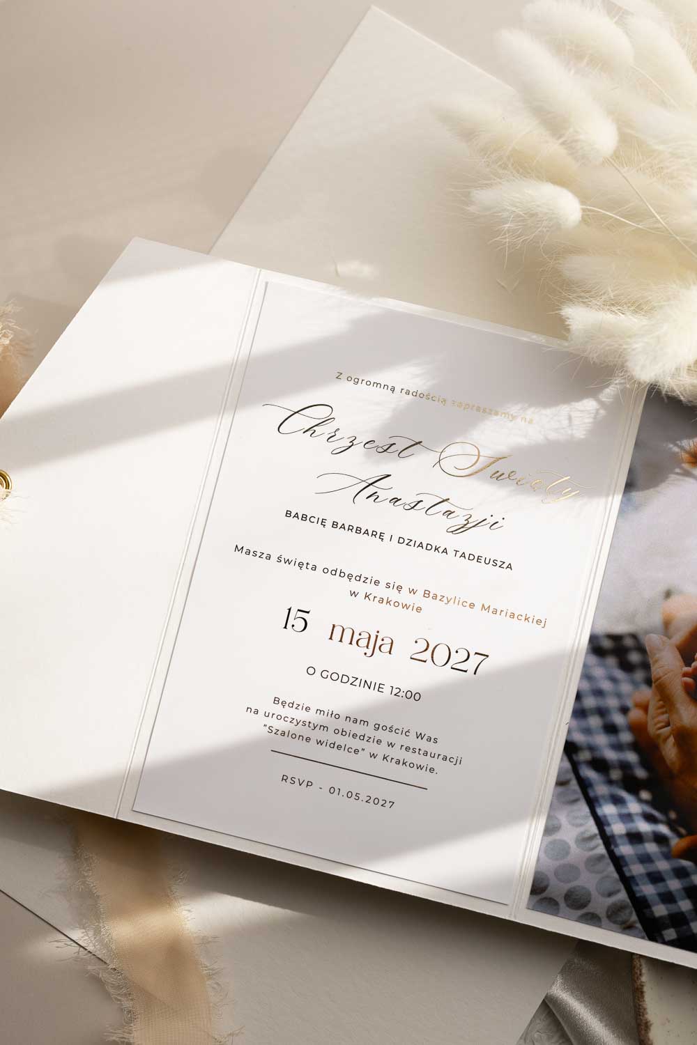 ZAPROSZENIE NA CHRZEST ZE ZDJĘCEM I ZŁOCENIEM