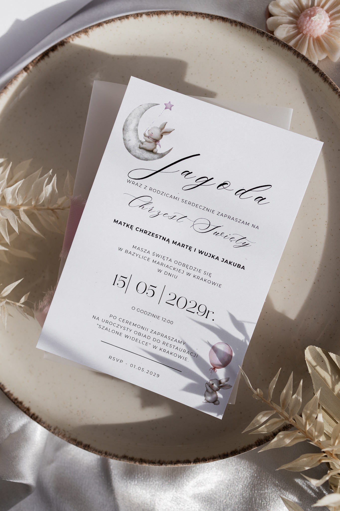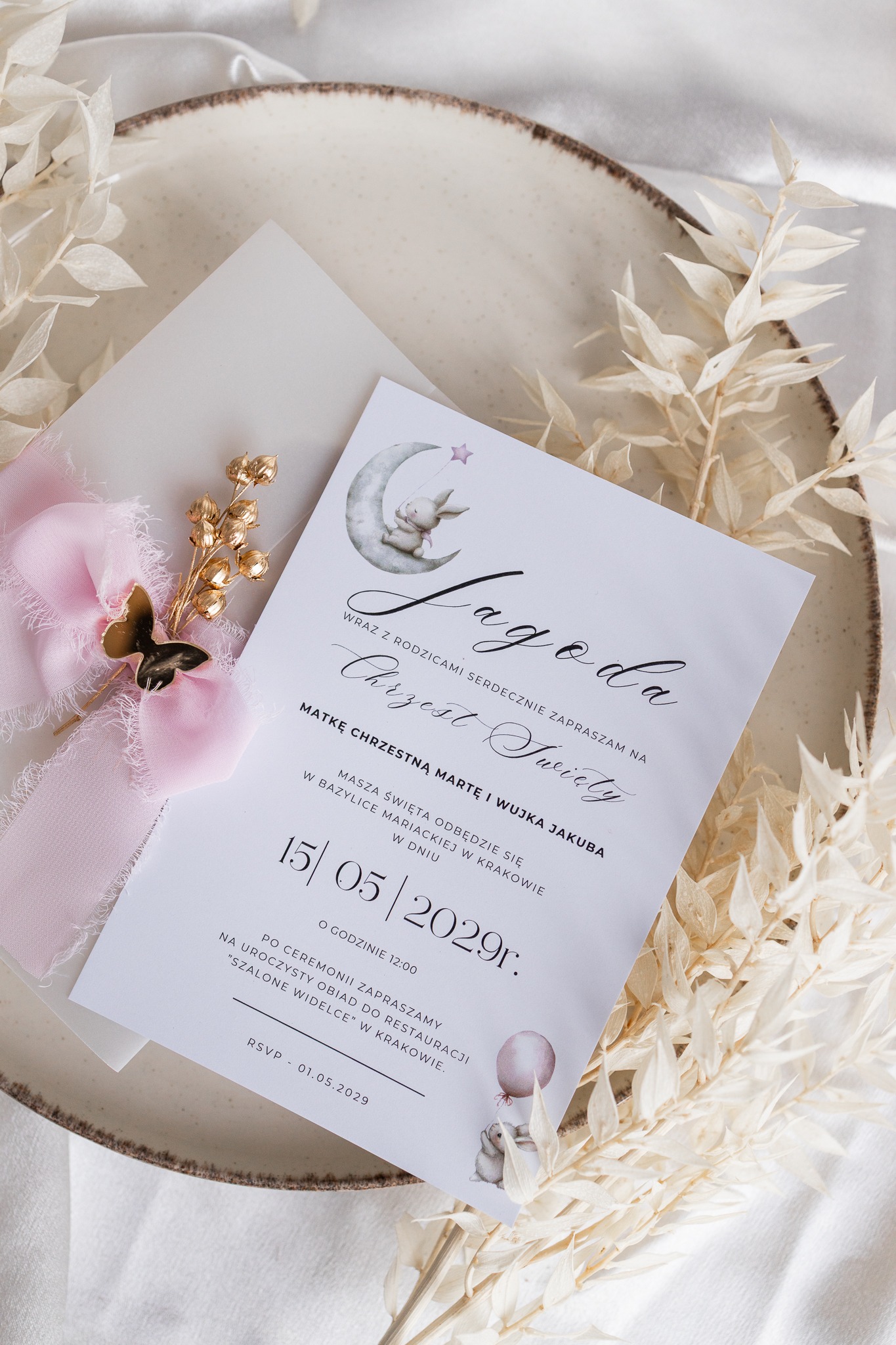 Format: jednokartkowe zaproszenie (ok. 12 × 17 cm)