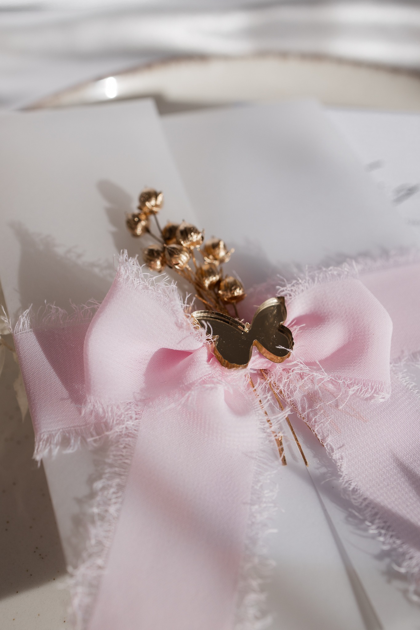 Dodatki: suszony kwiatek, złoty element w kształcie motylka