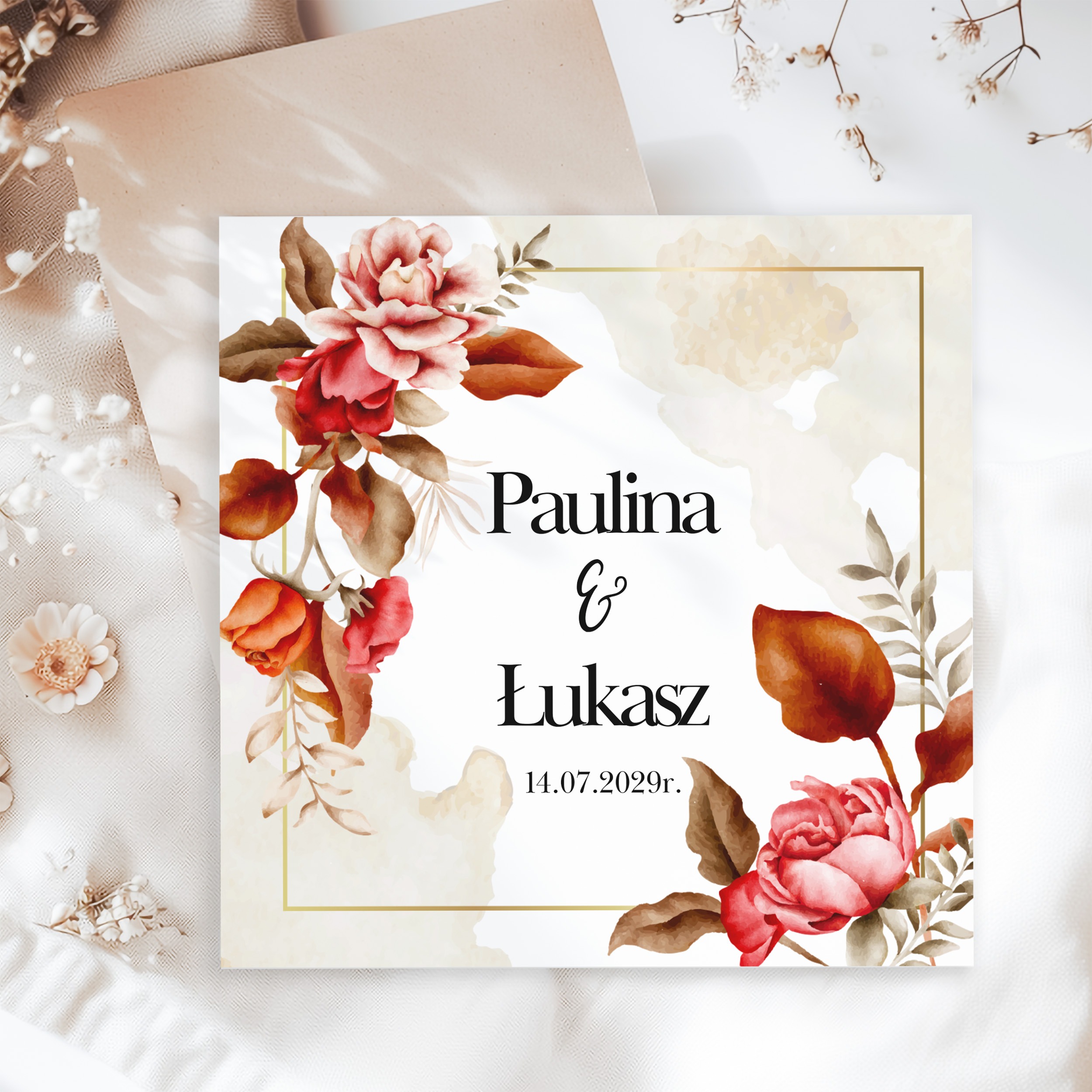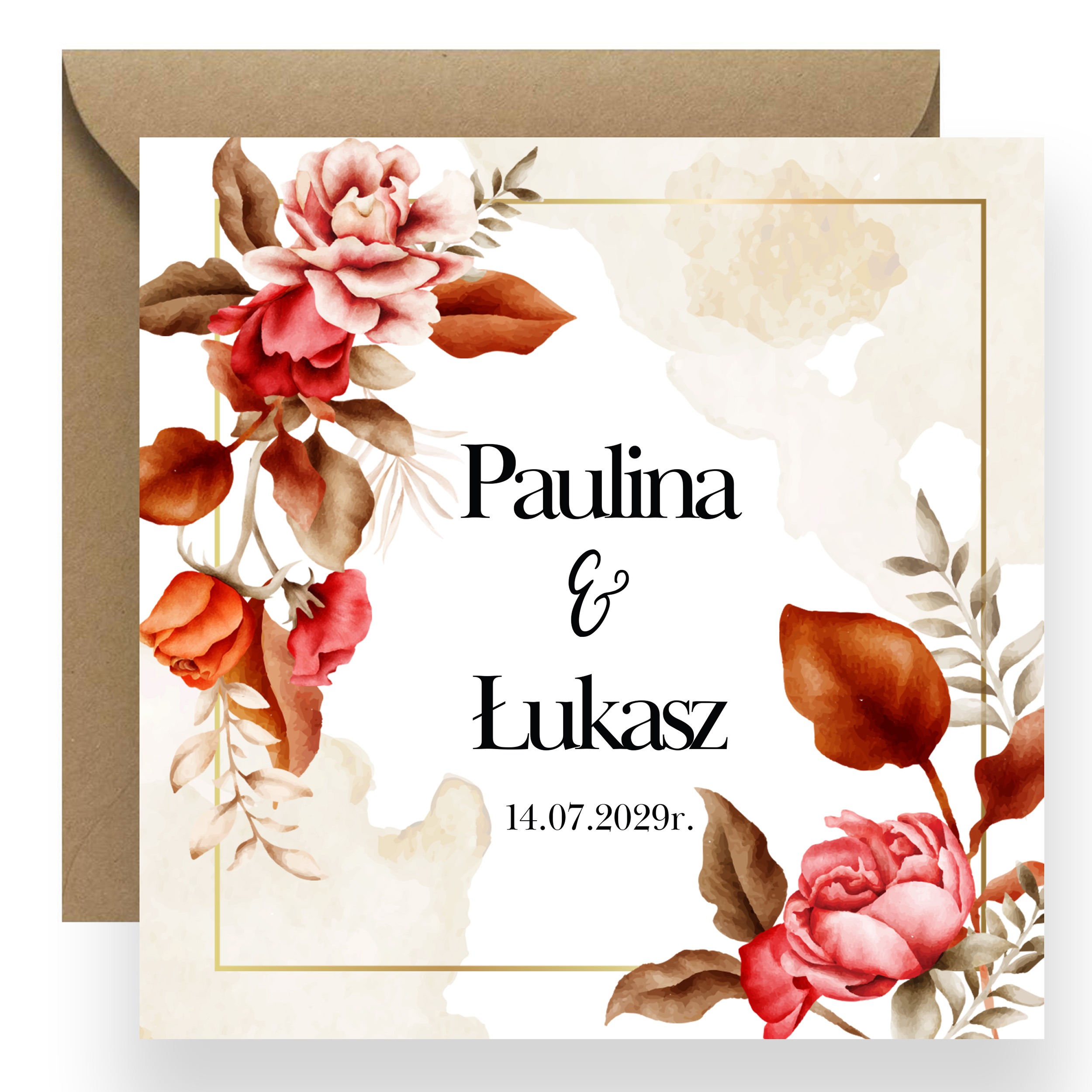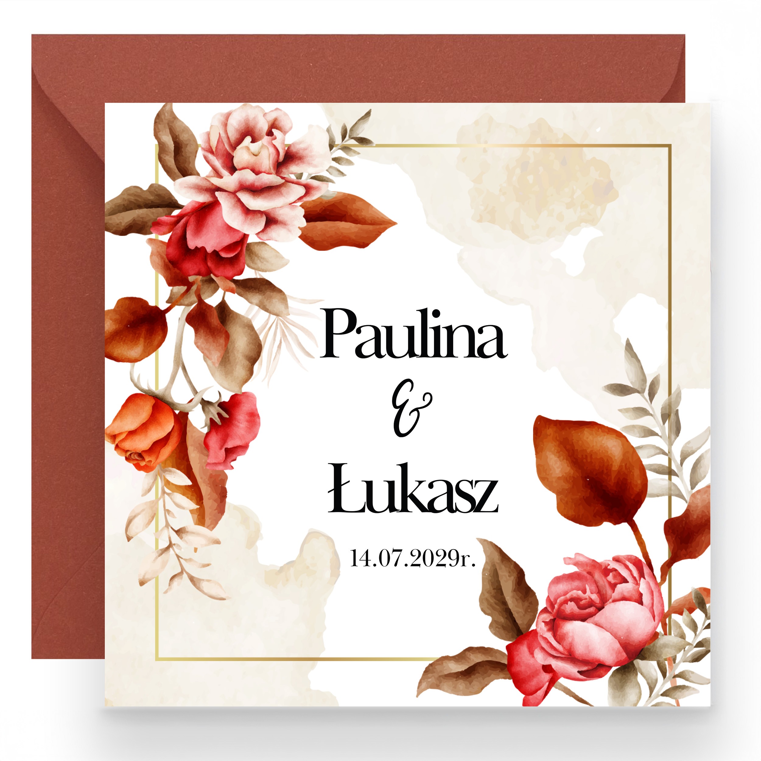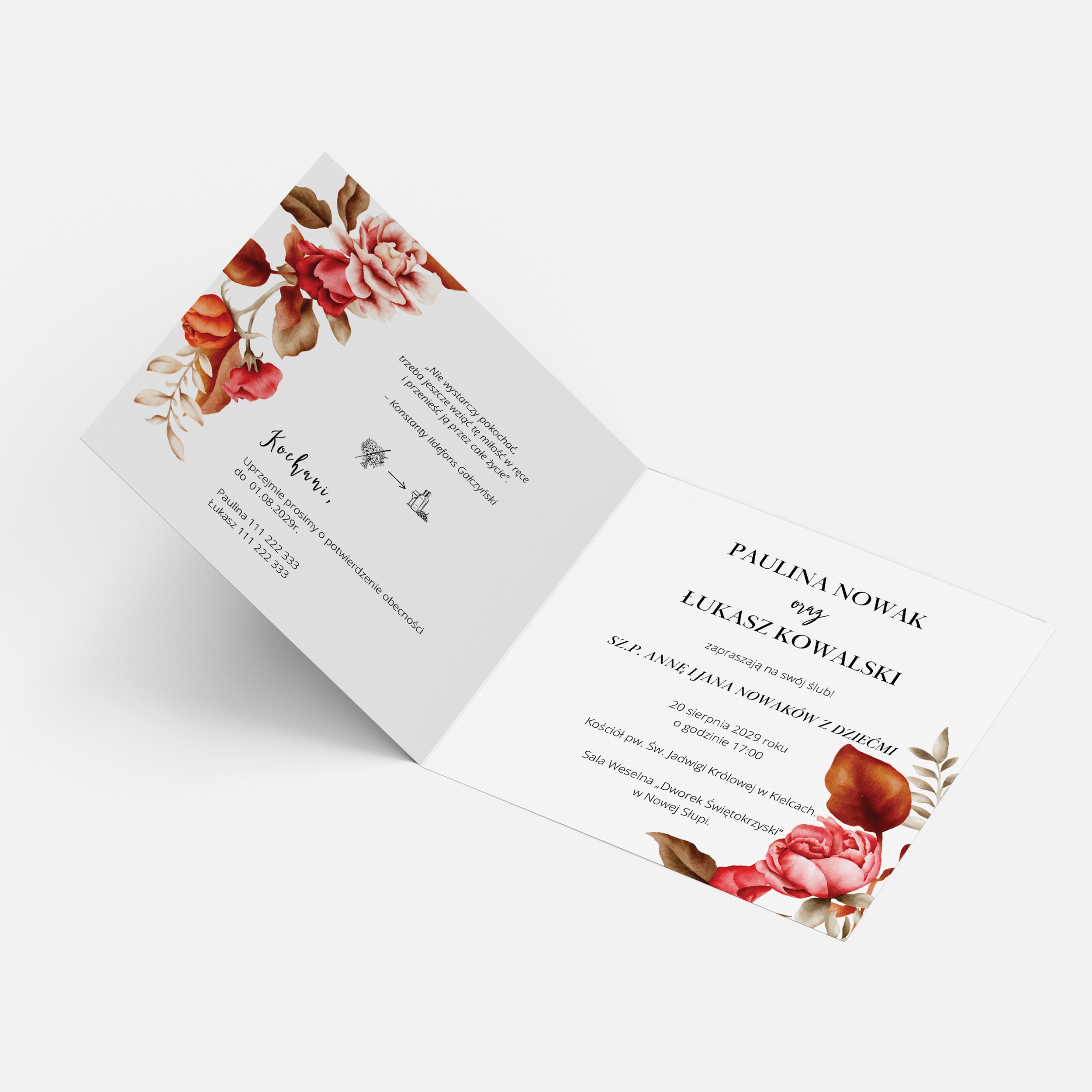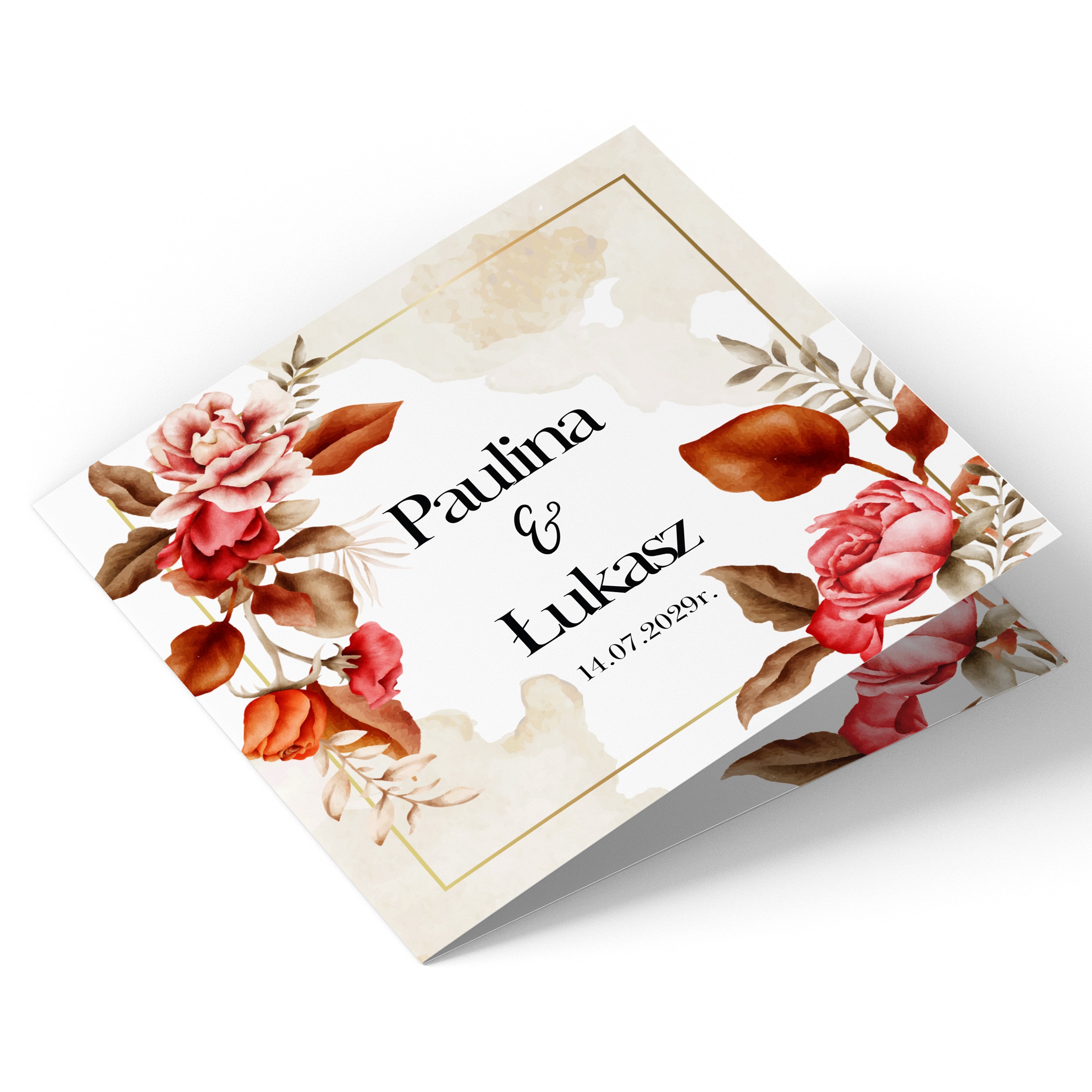 ZAPROSZENIE ŚLUBNE Z BORDOWYMI KWIATAMI – PZ15