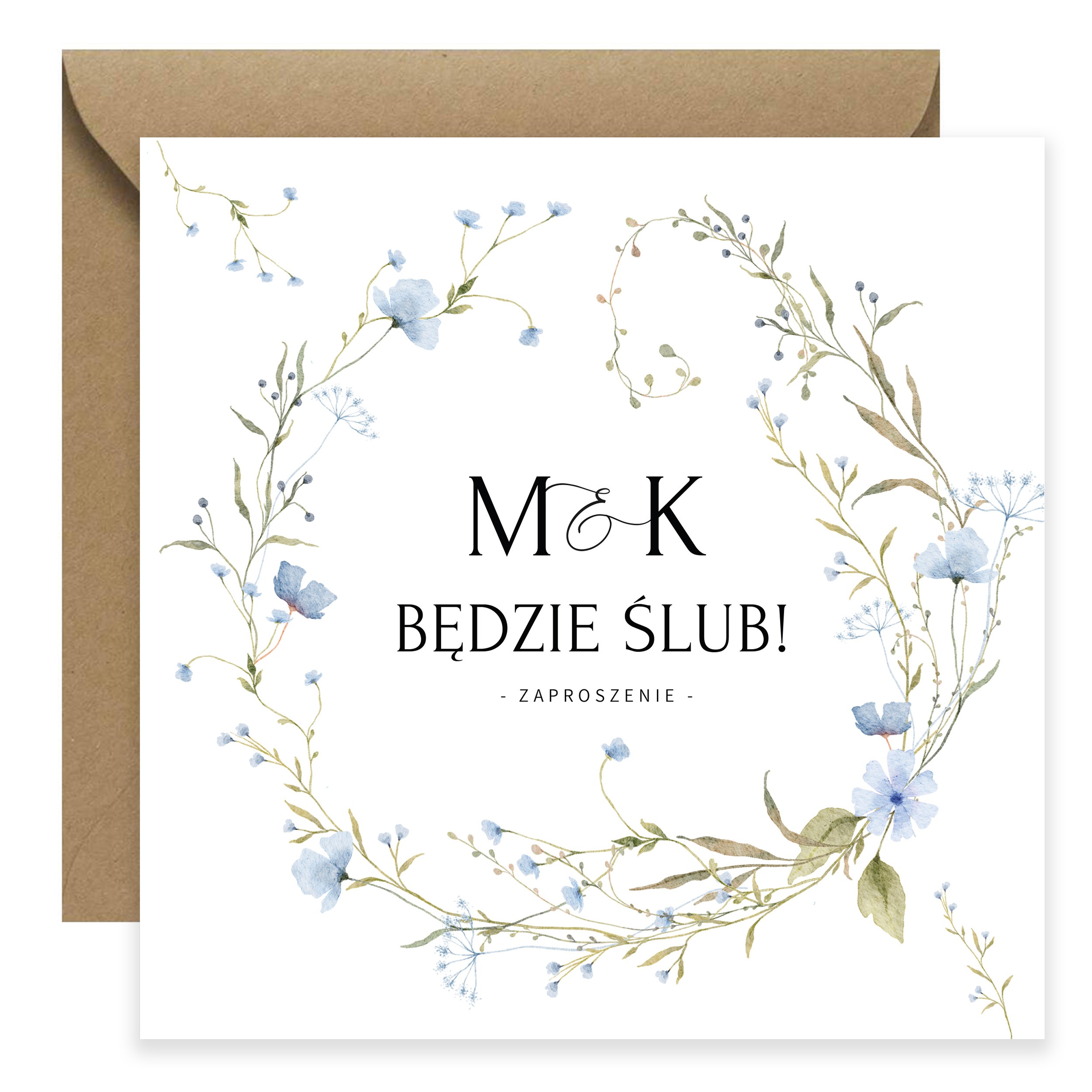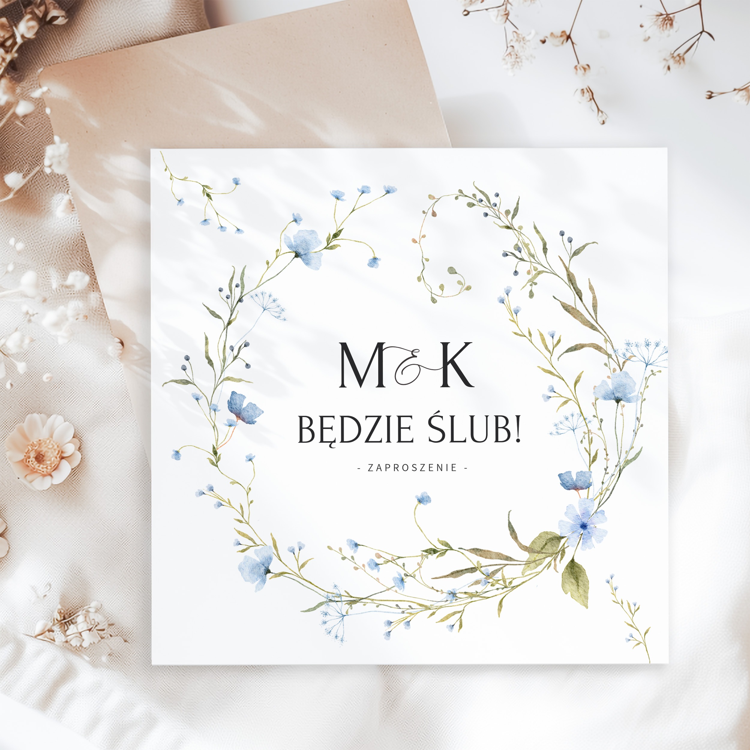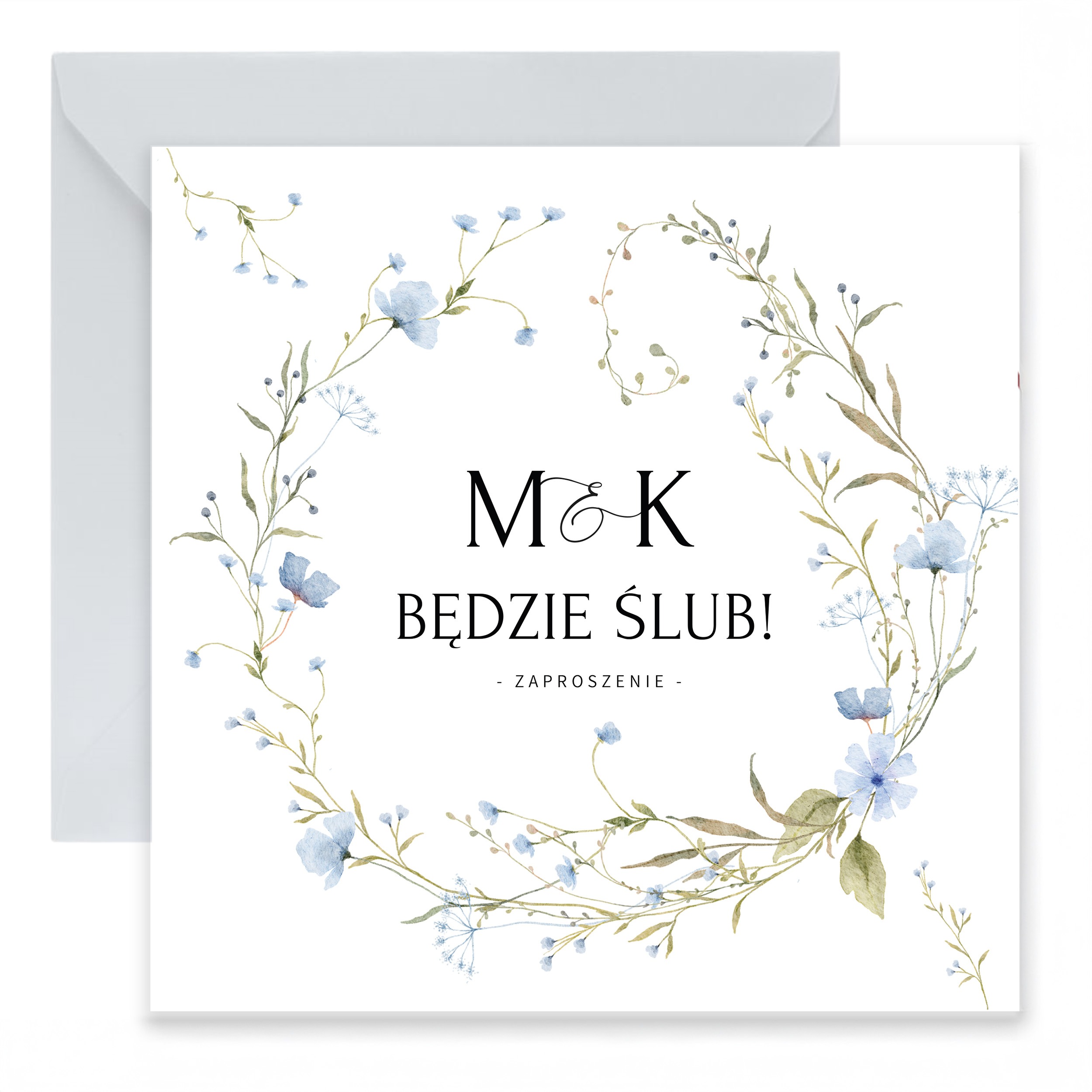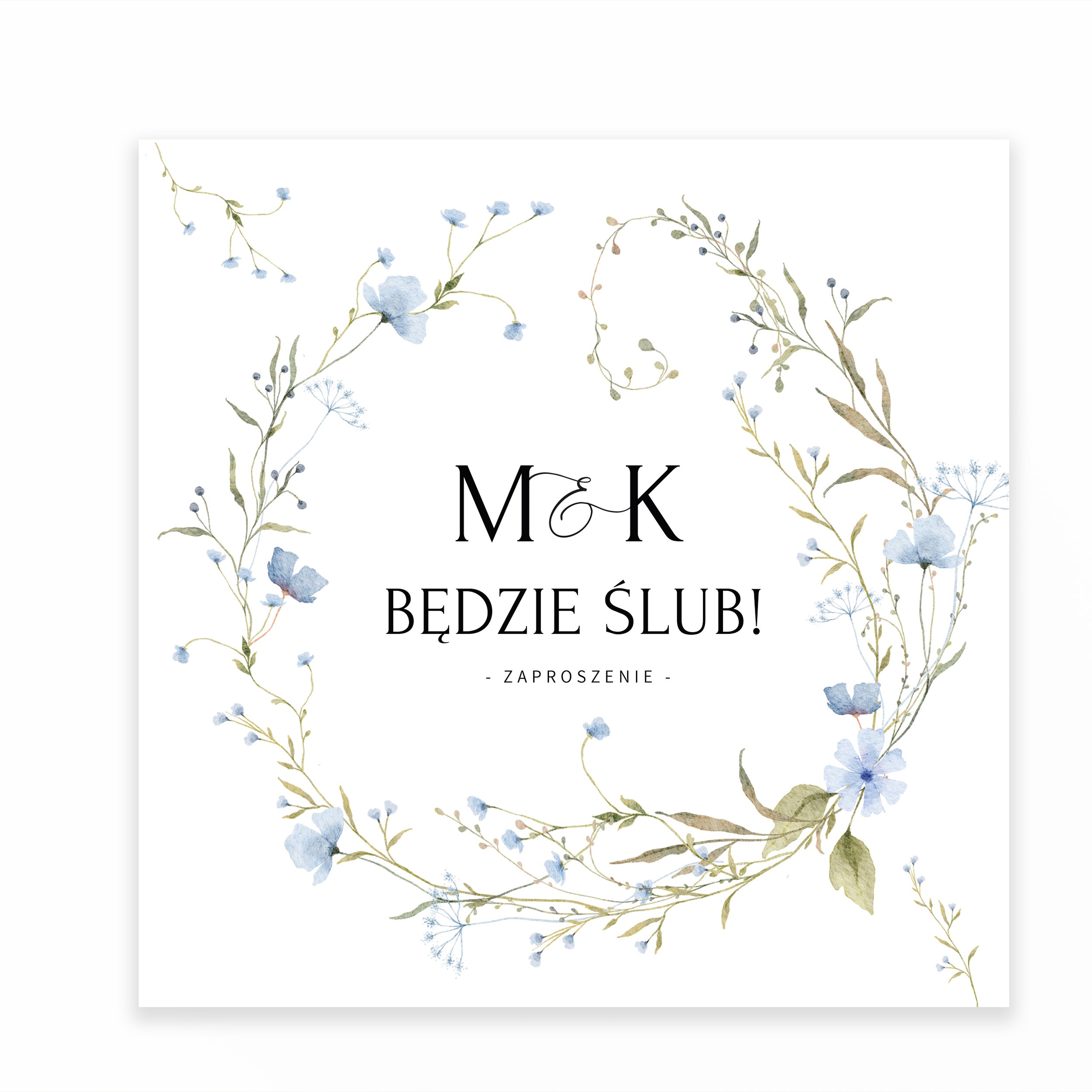 ZAPROSZENIE ŚLUBNE Z NIEBIESKIMI KWIATAMI – PZ18