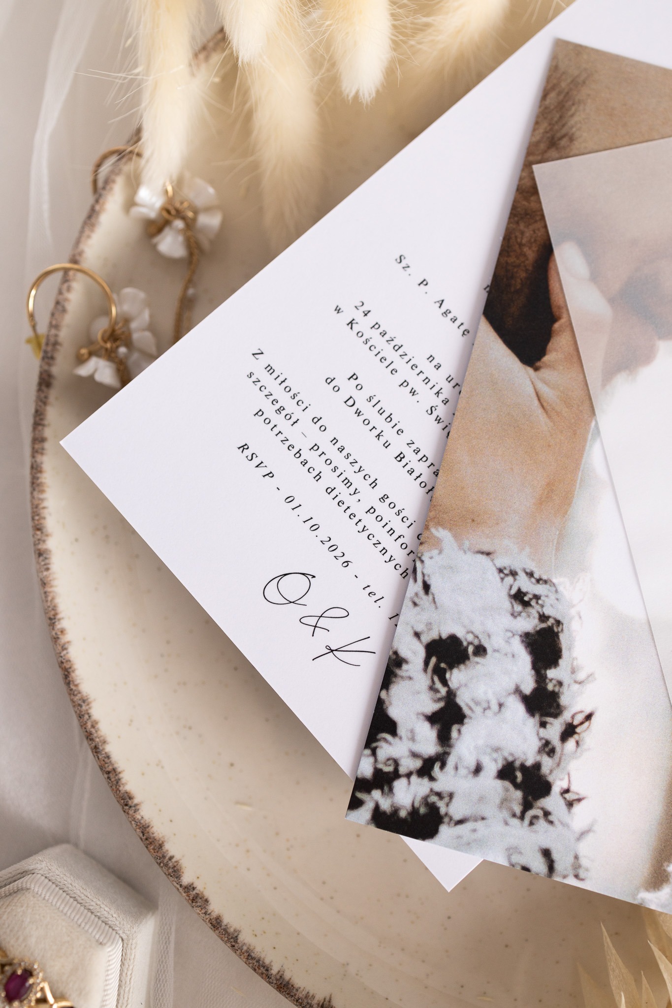 - Zdjęcie – drukowane na grubym, gładkim papierze (300 g), zapewniającym sztywność i unikatowy charakter.