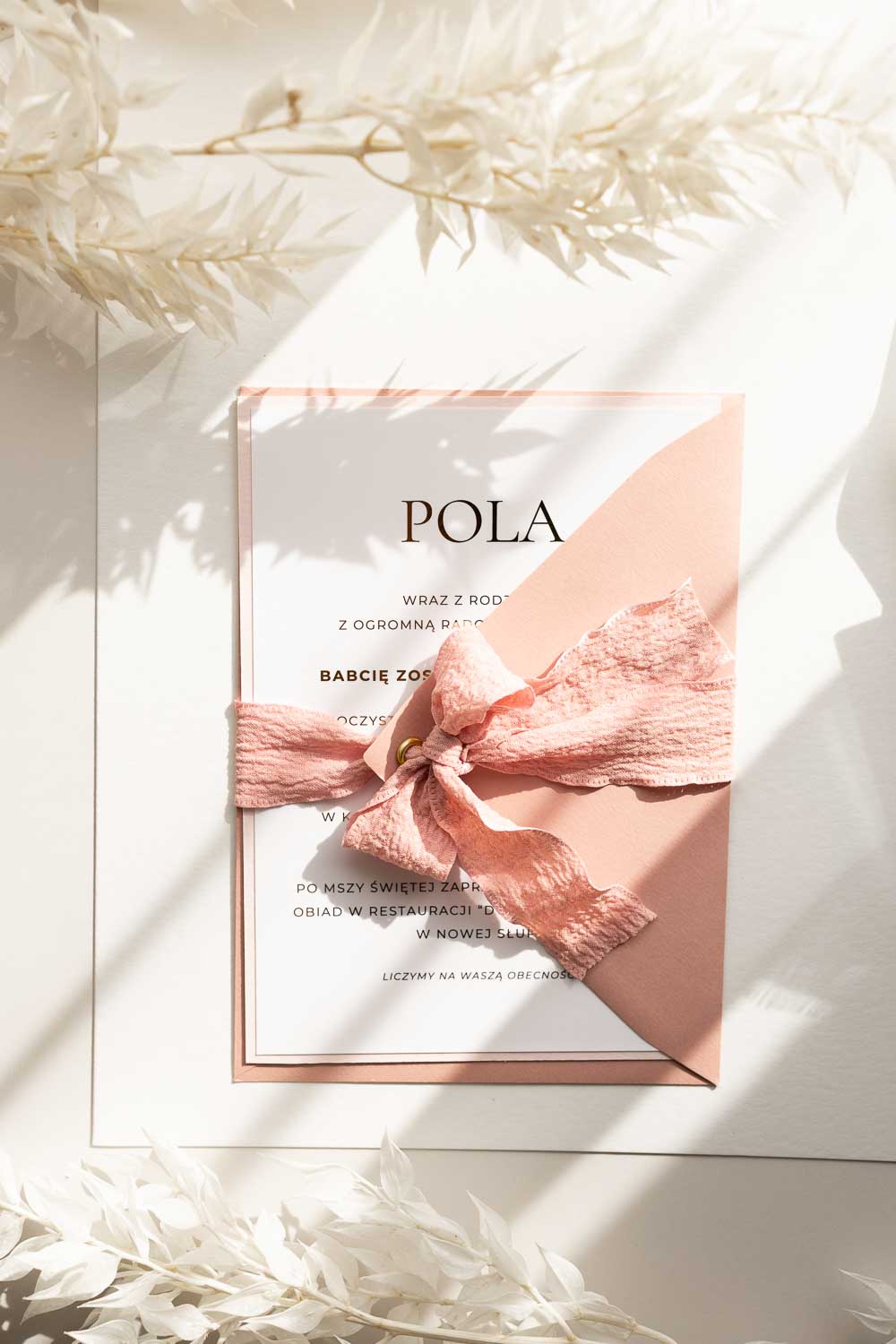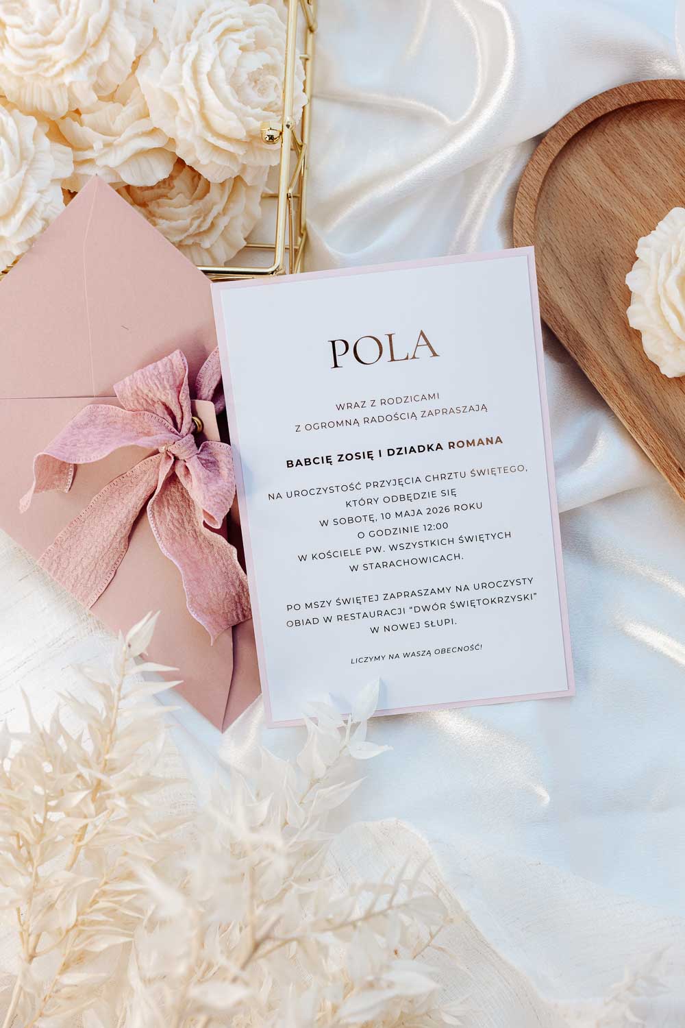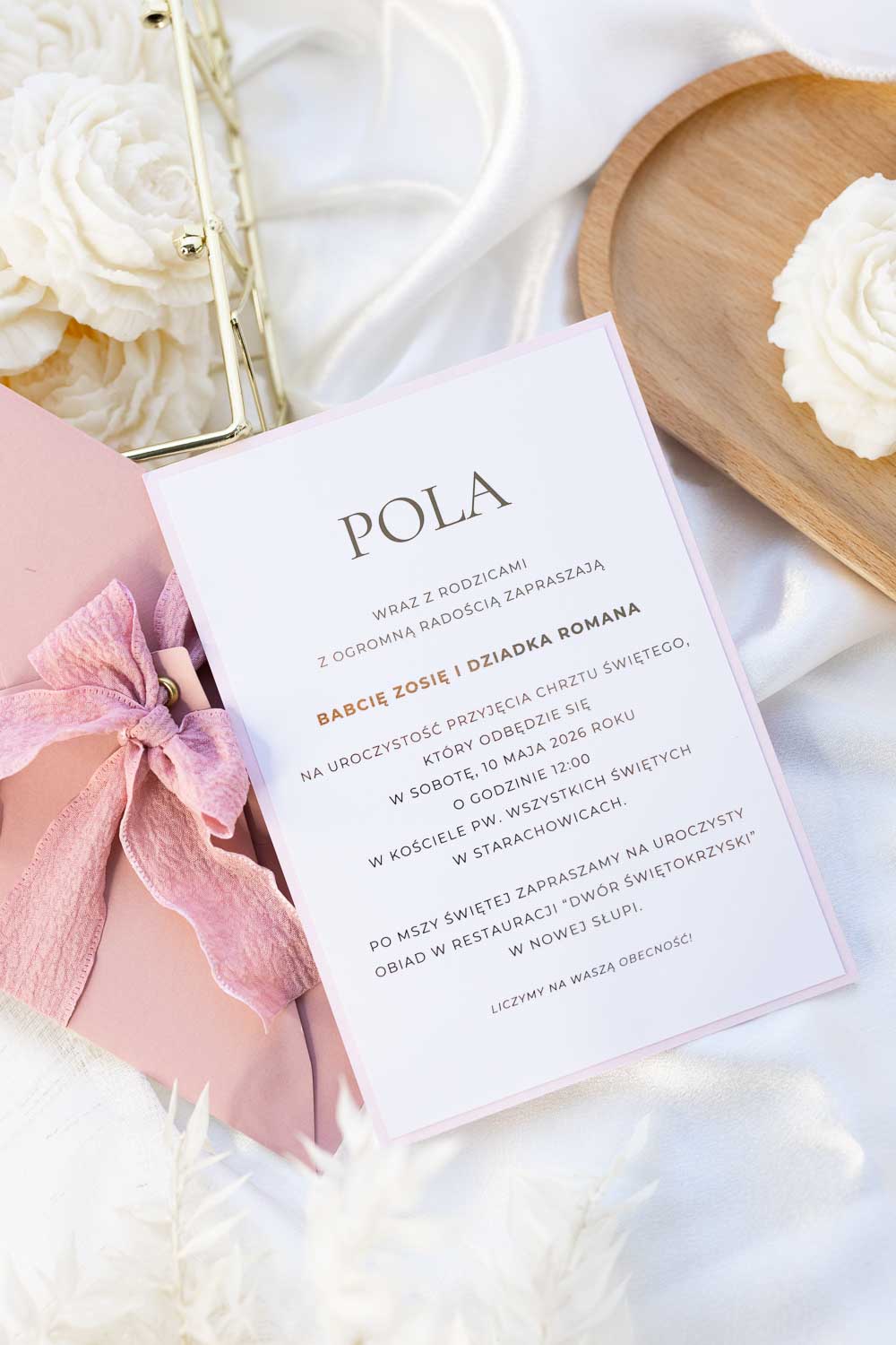 Nowoczesne zaproszenie na Chrzest Święty. Minimalistyczna forma. Każde zaproszenie możemy spersonalizować pod daną okoliczność.