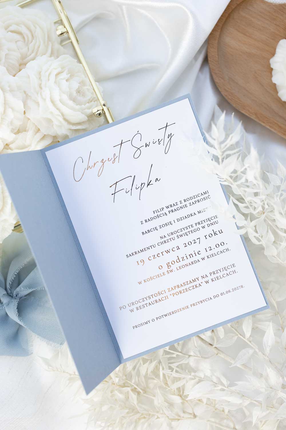 Jeśli interesują Was inne opcje, których nie znaleźliście na stronie lub chcecie spersonalizować zaproszenie pod inną uroczystość – skontaktujcie się z nami telefonicznie lub e-mailowo.